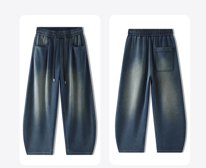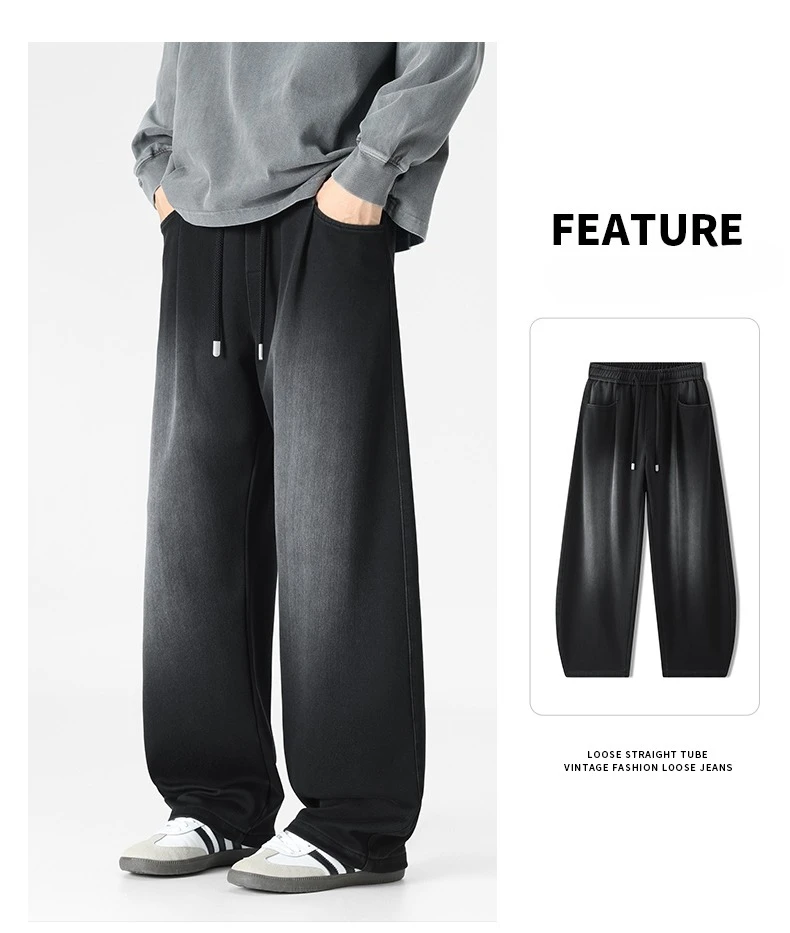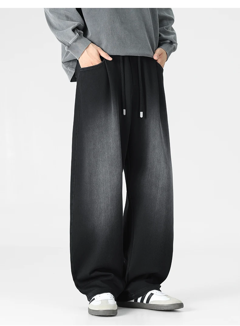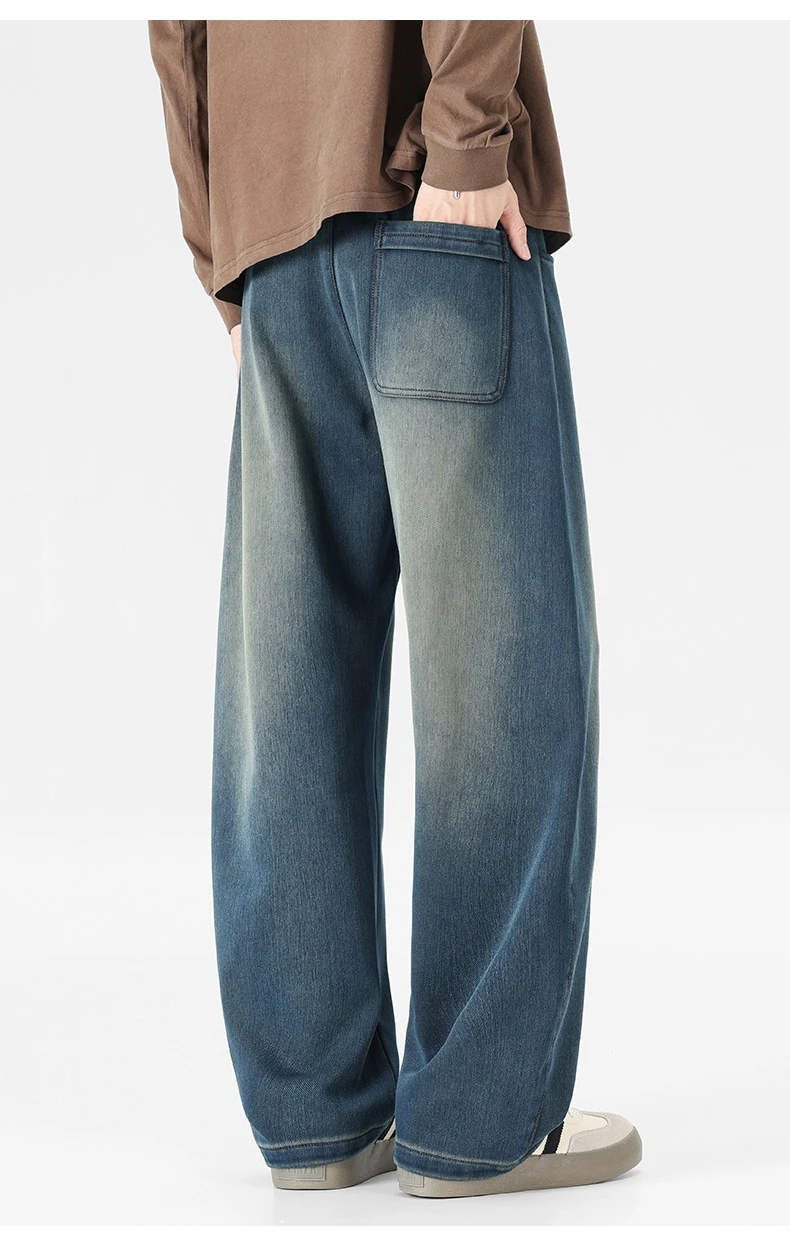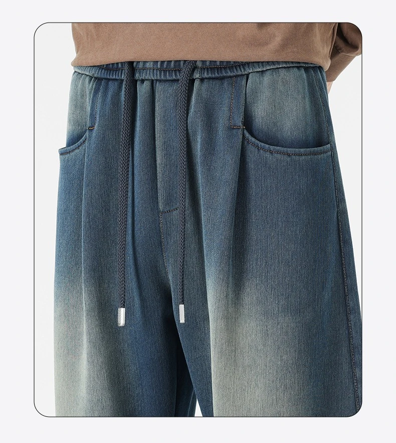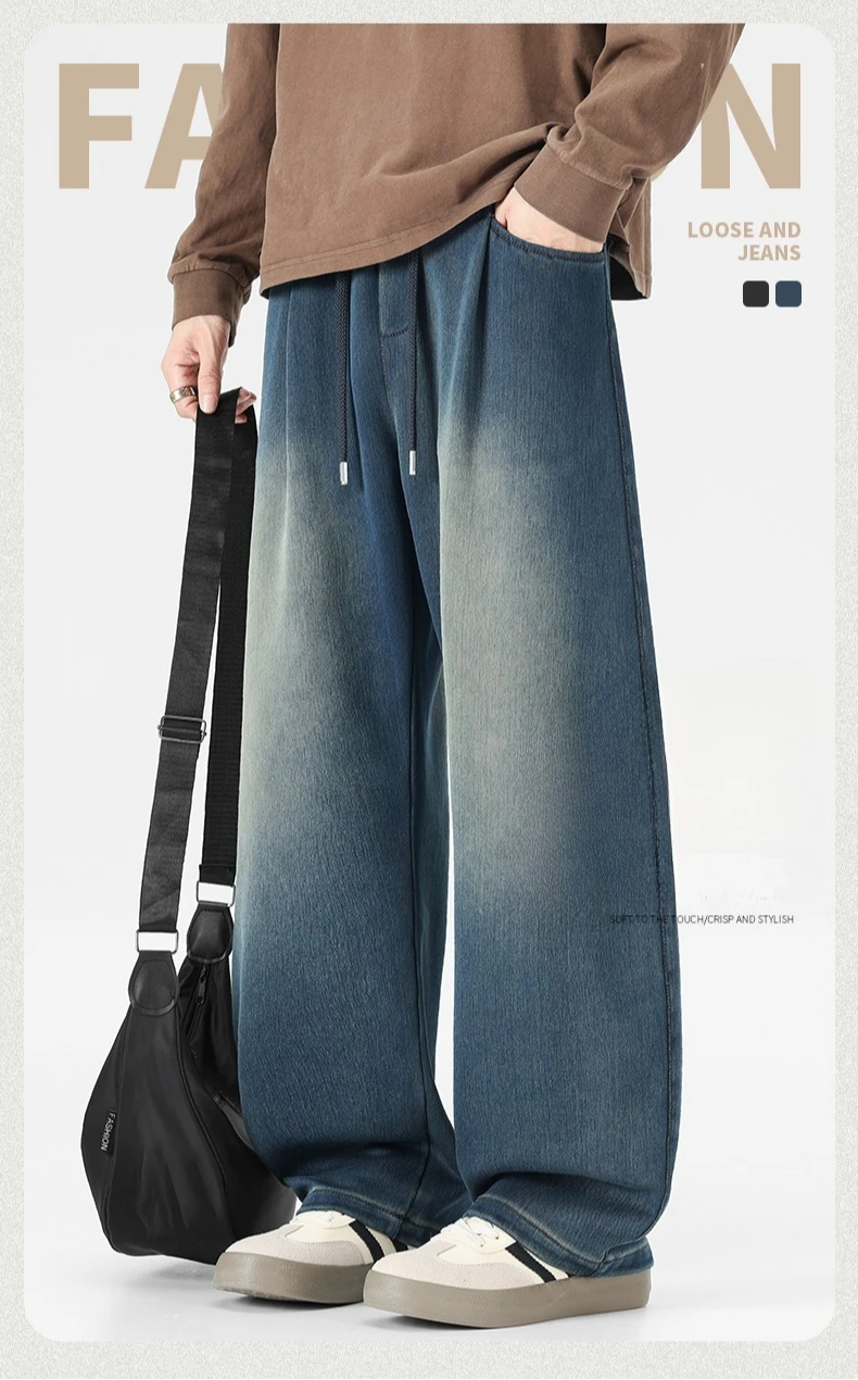 Baggy Jeans Men's Fashion 2026 New Wide Leg Straight Casual Drawstring Trousers Men's Clothing Fashion Vintage Denim Pants