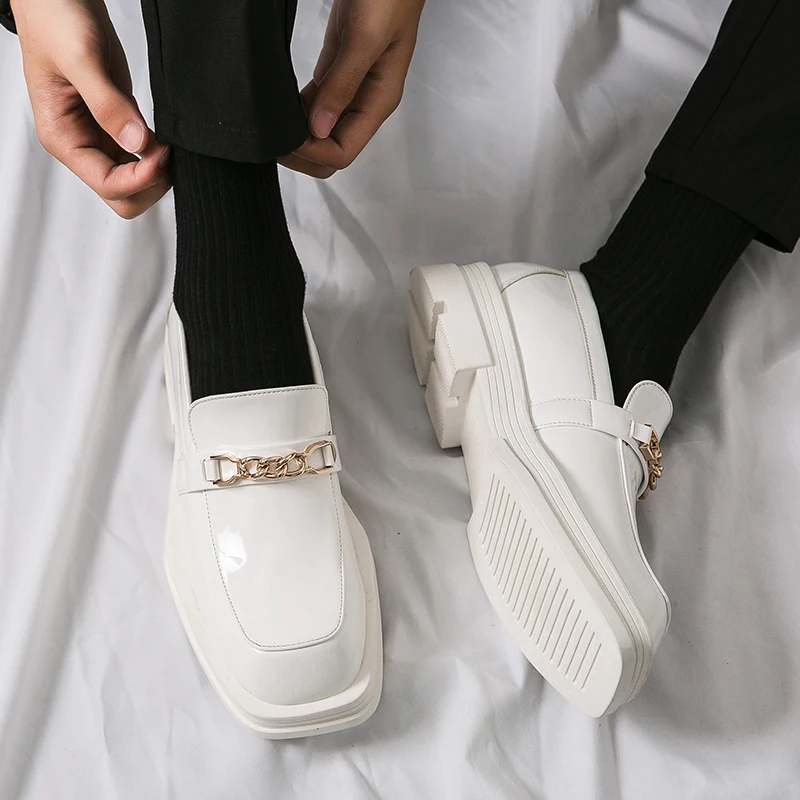 Male Luxury white Loafers Shoes Leather Shoe Men Platform Retro Business Work Shoes Spring Autumn Derby Shoes Low Top Man Casual