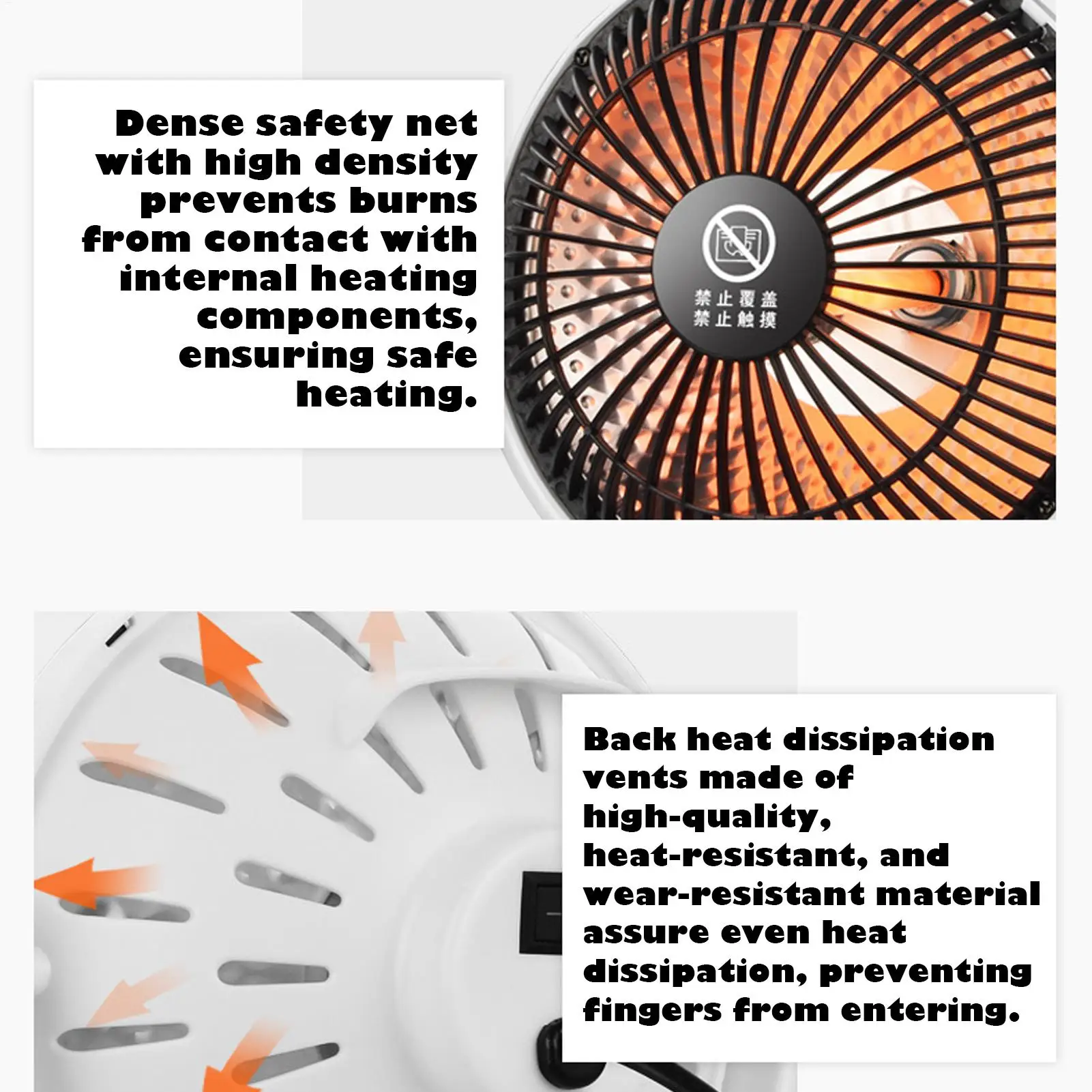 1.Advanced Safety Features: This desk heater includes smart auto-shutoff and a flame-retardant cover, providing peace of mind for users who need reliable heating solutions without compromising safety in personal or shared environments