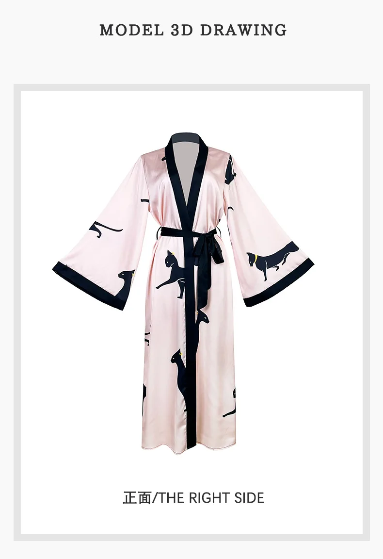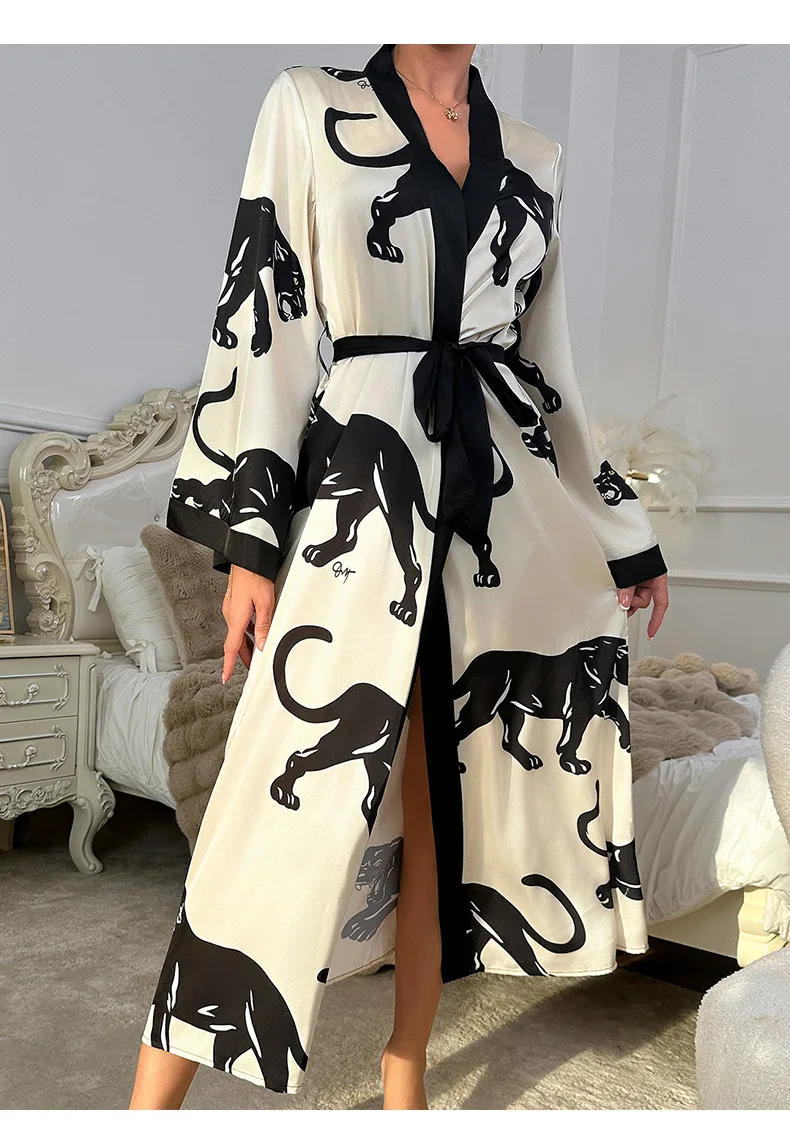 Wedding Party Dress Fashion Printed Robe Women's Clothing Loose Silk Satin Sleepwear Night Gowns Long Sleeve Ladies Bathrobe