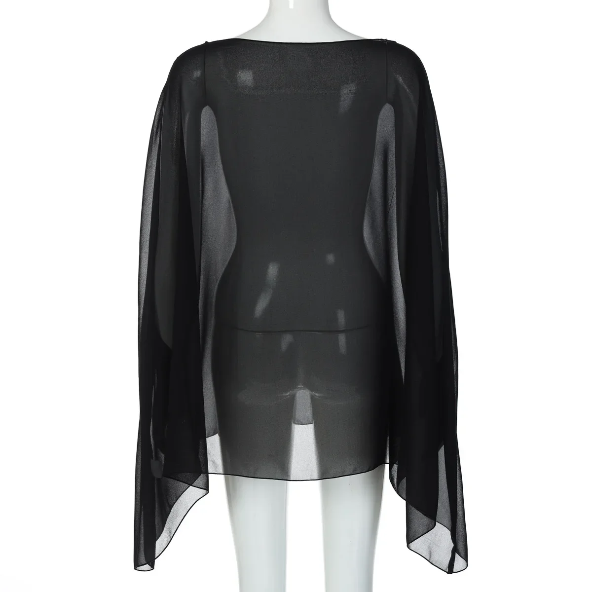 Woman Clothes See-through Chiffon Blouses Sexy Fashion Solid Cover-ups Ladies Elegant Night Club Tops White Black Streetwear